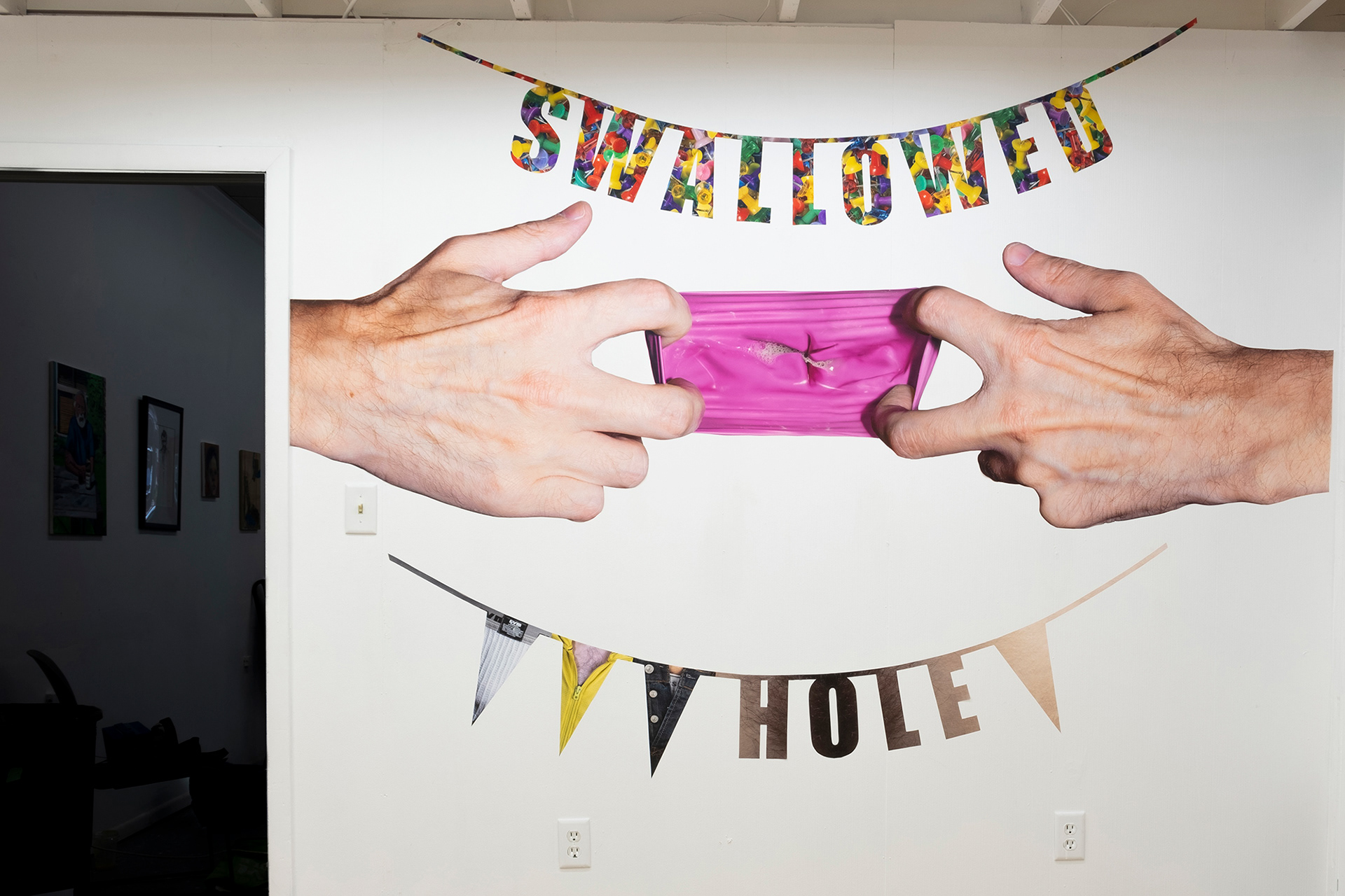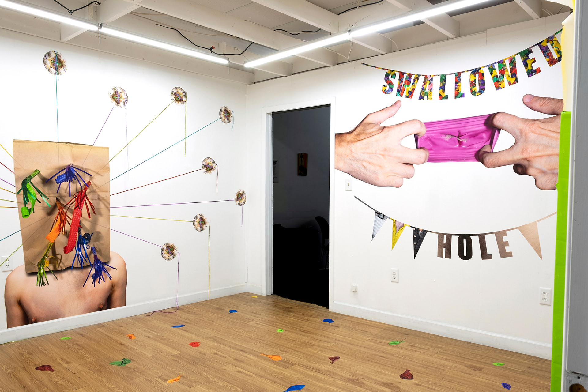 The bold imagery is campy and queer, making themes of sex visible and unavoidable. The holes that disrupt these walls are not empty voids; they are the wounds we bear and the battlegrounds where we wage our rebellion. They become portals through which we step into a world that is unapologetically queer and radically transformative. This is a space of defiance, where every form exposes the rawness, the power, and the vulnerability of queer existence.